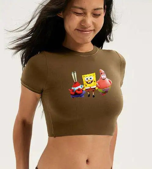 🍥 SpongeBob SquarePants Patrick Star Women’s T-Shirt – Summer Crop Top Fitness Tee, Home & Family Casual Wear ☀️👕